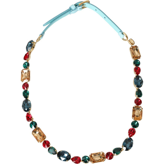 Dolce & Gabbana Light Blue Leather Crystal Chain Waist Belt