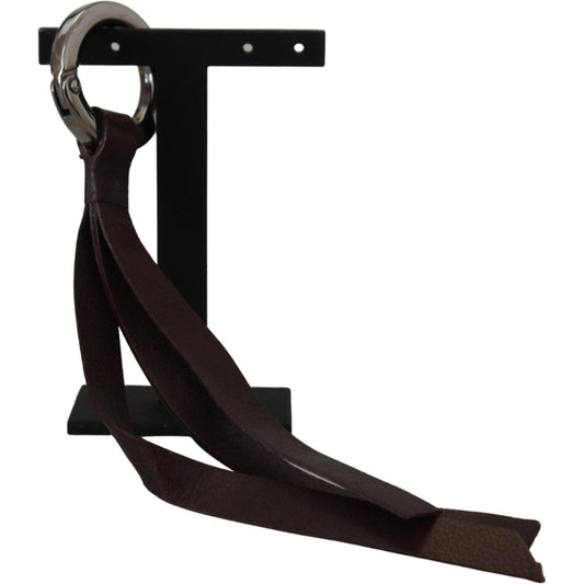 Costume National Brown Leather Silver Tone Metal Keyring Keychain