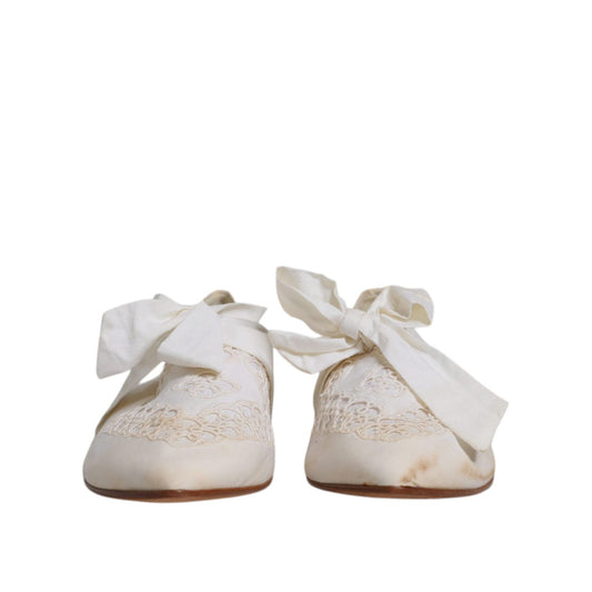 Dolce & Gabbana White Ribbon Fabric Ballerina Flats Shoes