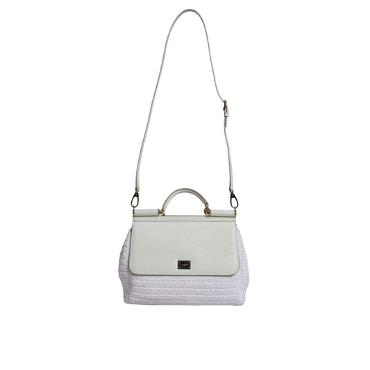 Dolce & Gabbana White Rafia Leather SICILY Crossbody Bag