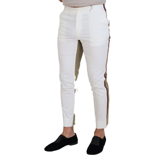 Dolce & Gabbana White Brown Slim Fit Chino Pants