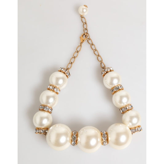 Dolce & Gabbana Gold Brass Faux Pearl Crystal Statement Luxury Jewelry Necklace
