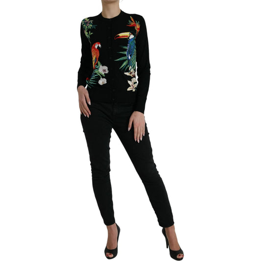 Dolce & Gabbana Black Bird Wool Long Sleeve Cardigan Sweater