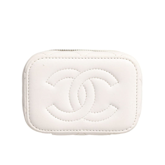 Chanel White Matelasse Lambskin Gold Chain Shoulder Vanity Mirror