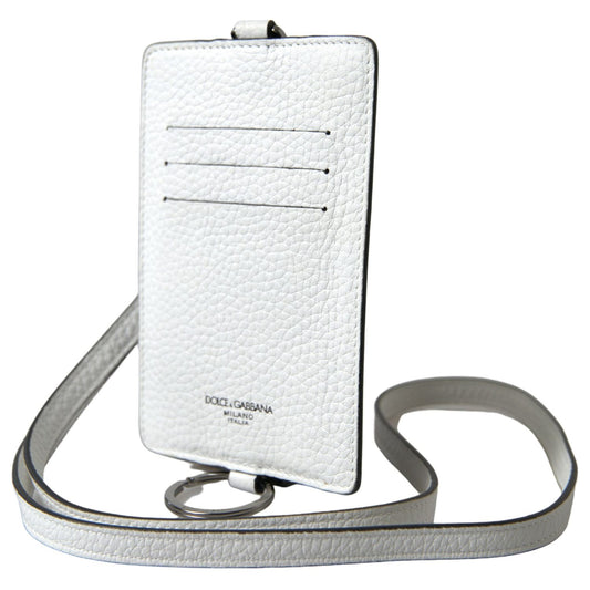 Dolce & Gabbana White Leather Lanyard Logo Card Holder Men Wallet