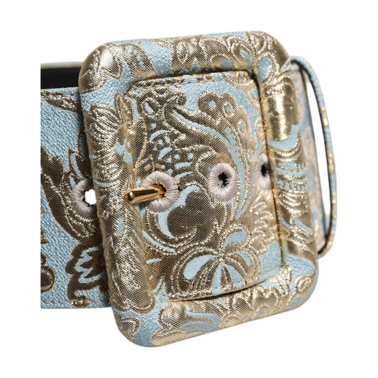Dolce & Gabbana Gold Spotted Jacquard Fabric Wide Waist Belt