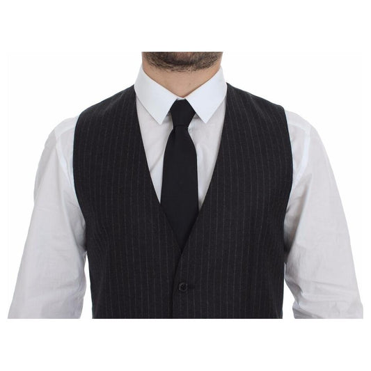 Dolce & Gabbana Gray Striped Wool Single Breasted Vest