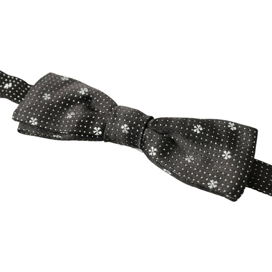Dolce & Gabbana Gray Dotted Silk Adjustable Men Neck Papillon Bow Tie