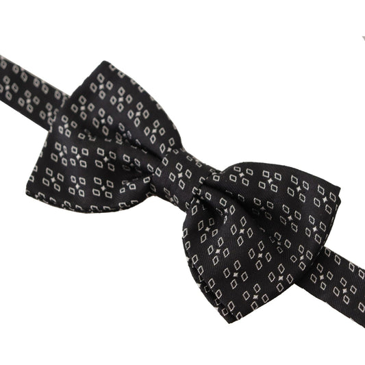 Dolce & Gabbana Black Pattern Silk Adjustable Neck Papillon Bow Tie
