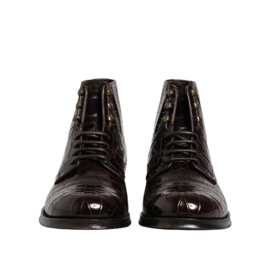 Dolce & Gabbana Dark Brown Leather Lace Up Mid Calf Boots Shoes