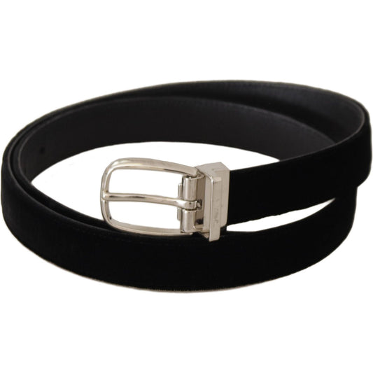 Dolce & Gabbana Black Casual Velvet Silver Tone Metal Buckle Belt