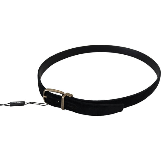 Dolce & Gabbana Black Velvet Leather Silver Buckle Belt