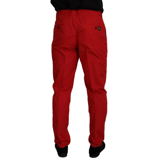 Dolce & Gabbana Red Cotton Slim Fit Trousers Chinos Pants