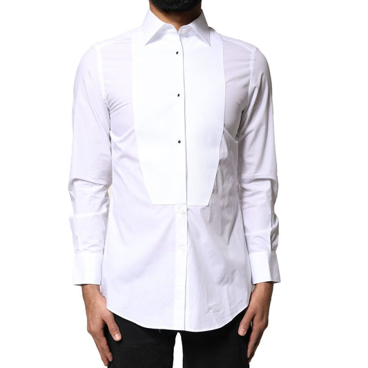 Dolce & Gabbana White Cotton Poplin Bib Formal Dress Shirt