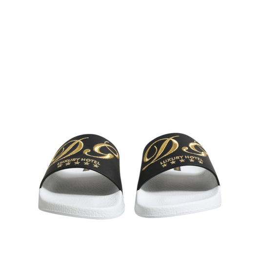 Dolce & Gabbana Black Leather Slides Sandals Beachwear Shoes