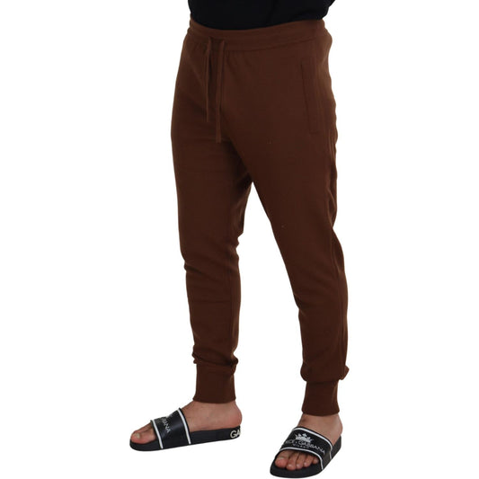 Dolce & Gabbana Brown Cashmere Men Drawstring Jogger Pants