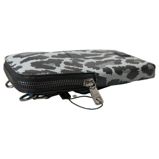 Dolce & Gabbana Gray Leopard Leather Men Purse Crossbody Sling Phone Bag