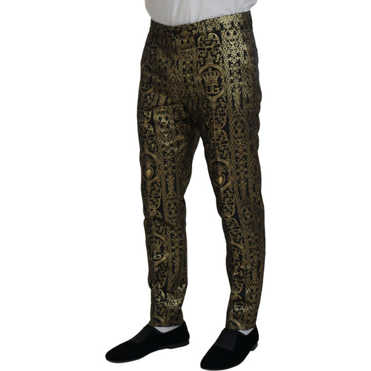 Dolce & Gabbana Black Gold Jacquard Dress Trouser Pants