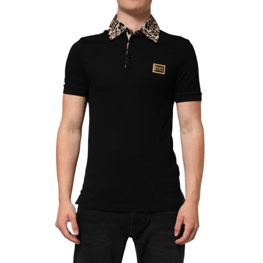 Dolce & Gabbana Black Cotton Leopard Collar Polo T-shirt