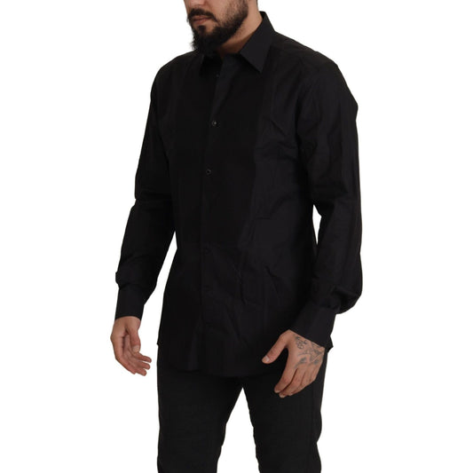 Dolce & Gabbana Black Cotton Stretch Slim Formal Dress Shirt