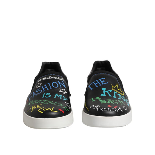 Dolce & Gabbana Black Leather Studded Graffiti Sneakers Shoes