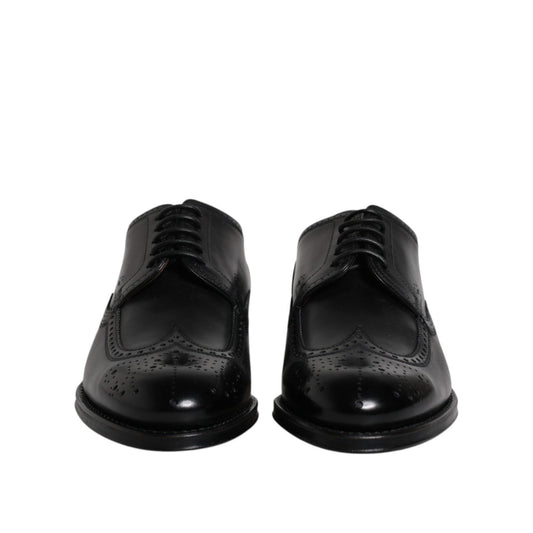 Dolce & Gabbana Black Leather Derby Wingtip Formal Shoes