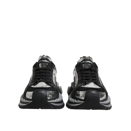 Dolce & Gabbana Black Silver SUPER KING Leather Sneaker Shoes