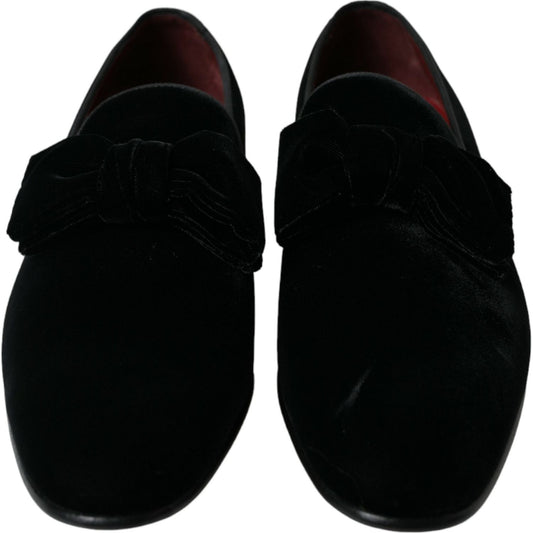 Dolce & Gabbana Black Velvet Loafers Formal Shoes