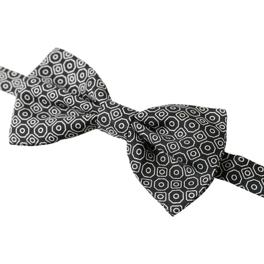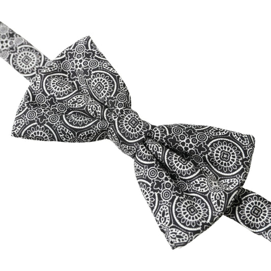 Dolce & Gabbana Black Patterned Silk Adjustable Men Neck Papillon Bow Tie