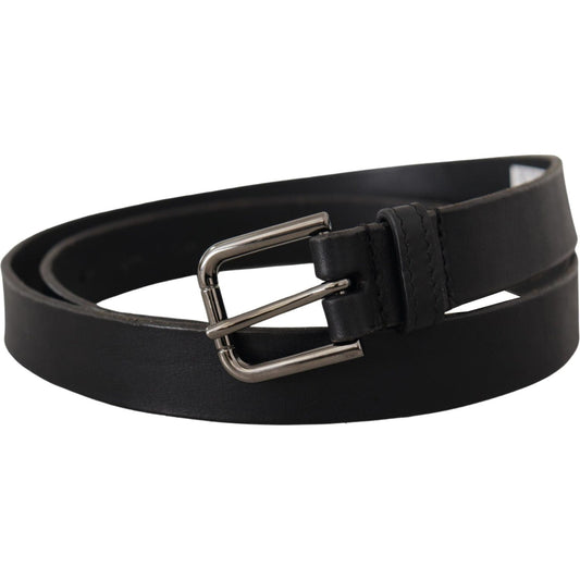 Dolce & Gabbana Black Plain Leather Vintage Logo Metal Buckle Belt