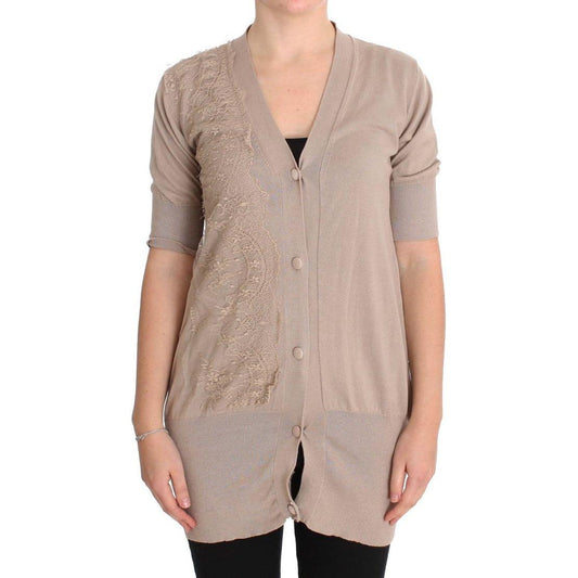 PINK MEMORIES Pink Lace Cotton Cardigan Sweater