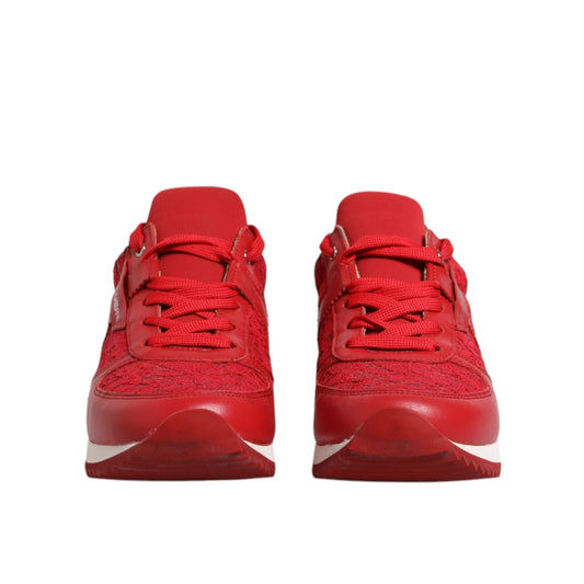 Dolce & Gabbana Red Floral Lace Leather Sneakers Shoes