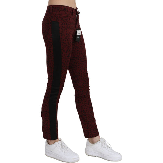 Costume National Dark Red Mid Waist Slim Fit Cotton Jeans