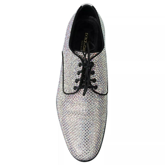 Dolce & Gabbana Silver Leather Rhinestones Derby Shoes