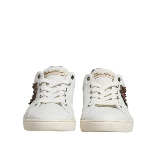 Dolce & Gabbana White Studded Printed Low Top Sneakers Shoes