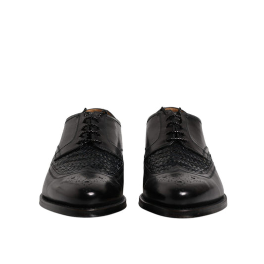 Dolce & Gabbana Black Leather Derby Wingtip Lace Up Formal Dress Shoes