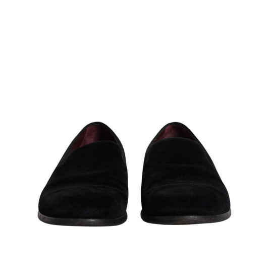Dolce & Gabbana Black Velvet Loafers Formal Men Dress Shoes