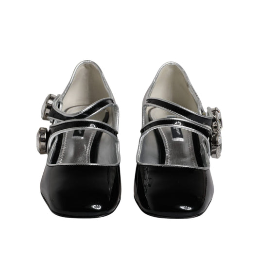 Dolce & Gabbana Black Patent Leather Crystal Mary Jane Pumps Shoes