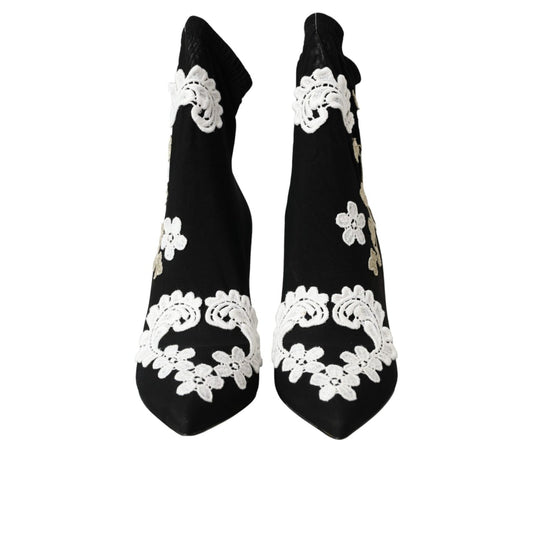 Dolce & Gabbana Black Stretch Pumps Boots Floral Lace Shoes