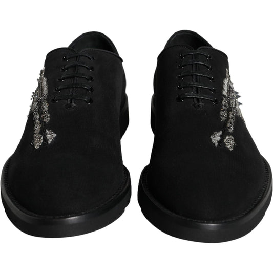 Dolce & Gabbana Black Suede Sicilia Lace Up Formal Shoes