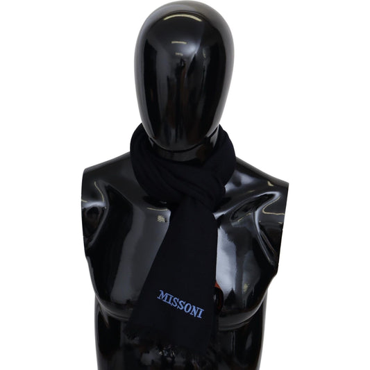 Missoni Black 100% Wool Unisex Neck Wrap Fringes Logo Scarf