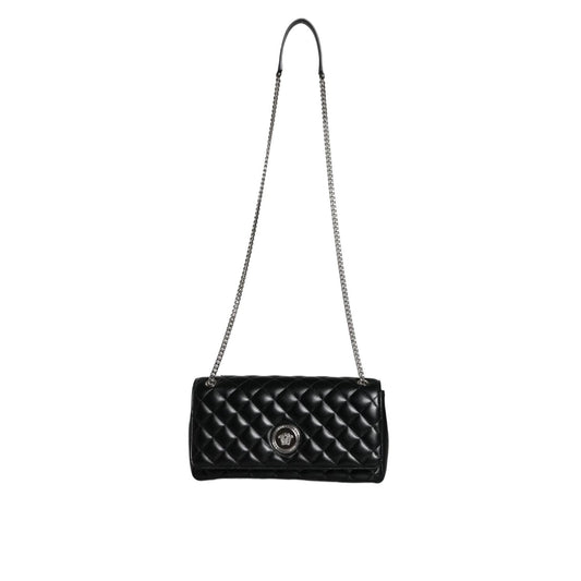 Versace Black Quilted Nappa Leather Shoulder Chain Strap Bag