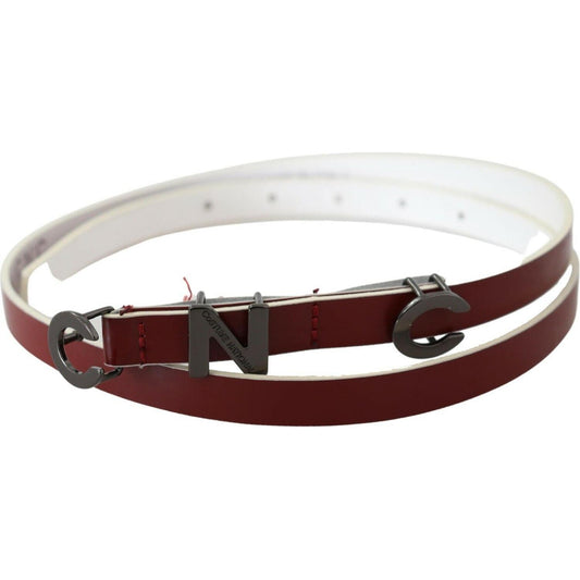 Costume National Red Brown Leather Silver Logo Buckle Waist Belt