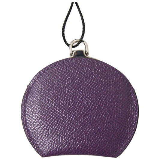 Dolce & Gabbana Purple Calfskin Leather Round Hand Mirror Holder
