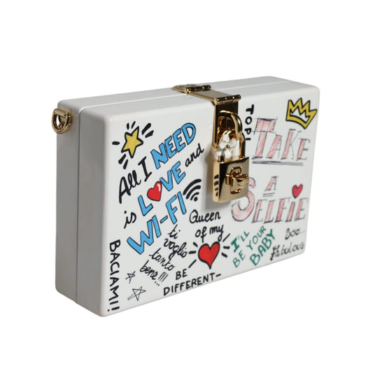 Dolce & Gabbana White Graffiti Print Clutch Crossbody Bag