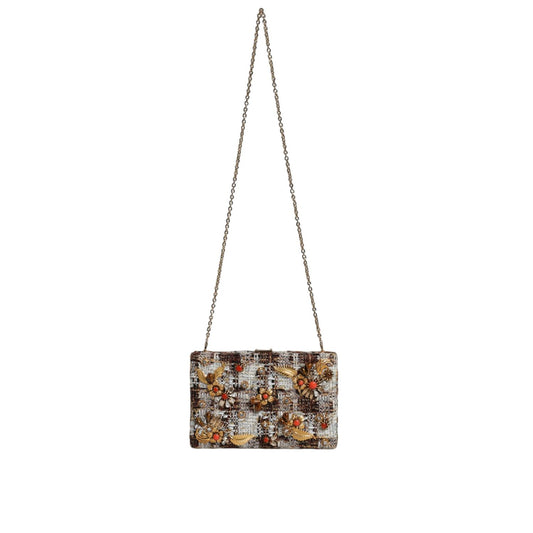 Dolce & Gabbana Multicolor Tweed Floral Clutch Crossbody Bag