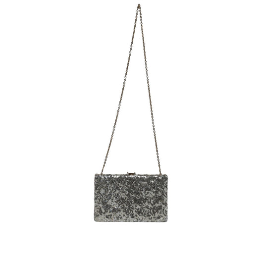 Dolce & Gabbana Silver Sequined Clutch Evening Crossbody Bag