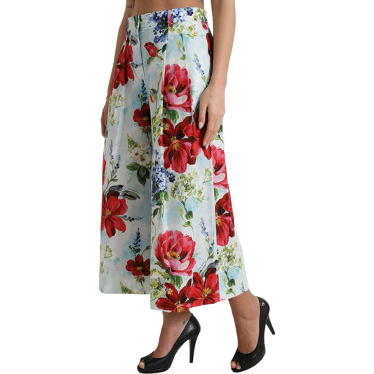 Dolce & Gabbana Multicolor Flora Printed High Waist Cropped Trouser Pants