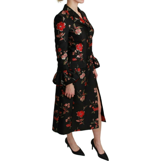 Dolce & Gabbana Black Floral Embroidered Jacket Coat
