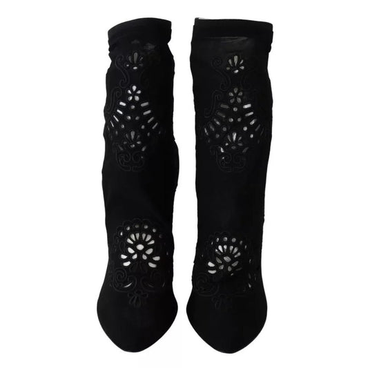 Dolce & Gabbana Black Lace Stretch Heels Mid Calf Boot Shoes